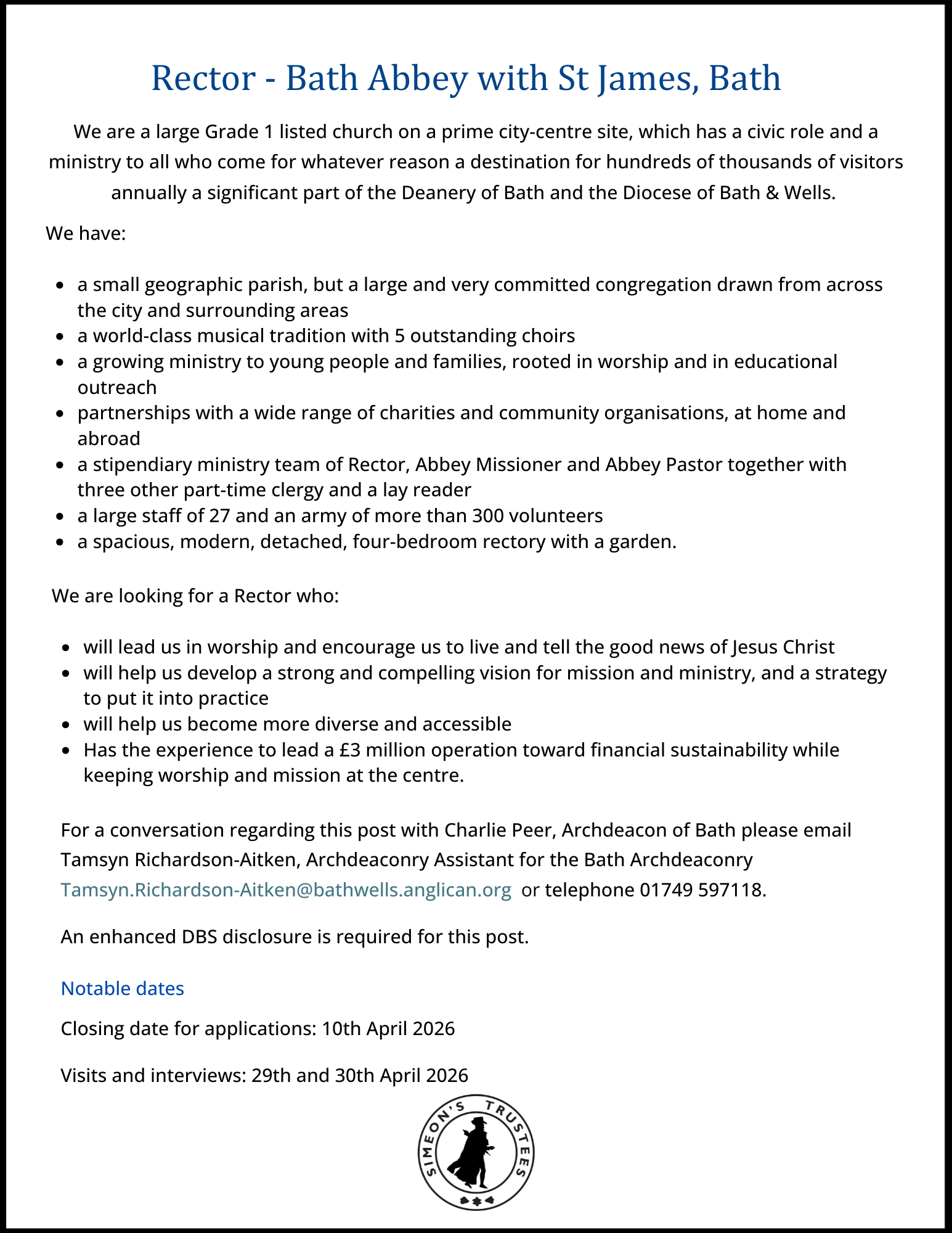 Simeon’s Trustees normally use the Church of England Pathways recruitment process