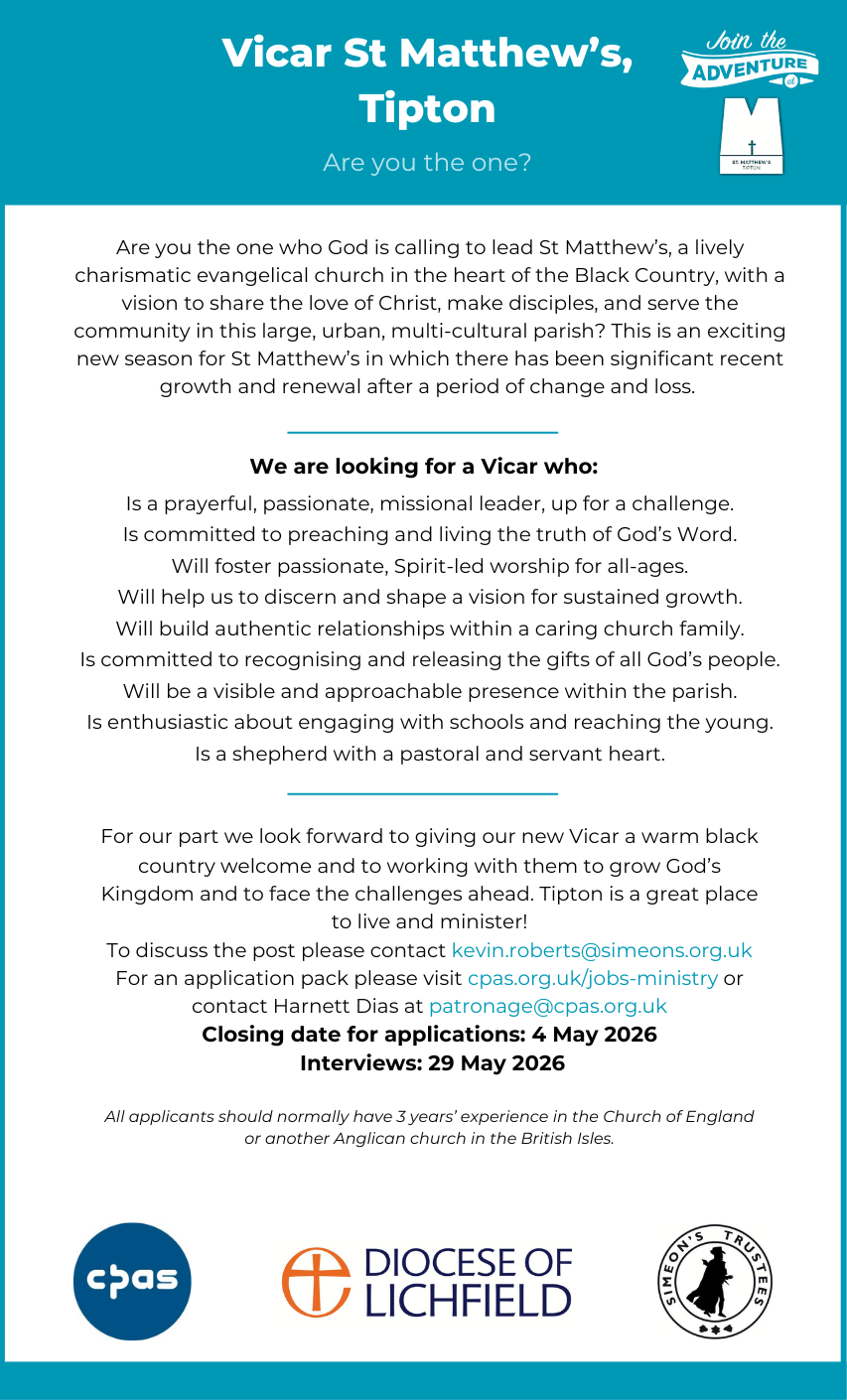 We are committed to safeguarding and promoting the welfare of children, young people and vulnerable adults. All appointments are made in accordance with individual Dioceses’ safeguarding policies.
